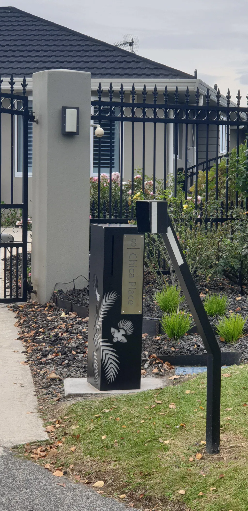 The Piwakawaka Fern is one of the most popular designs in our Nikau mailbox range, offering a stunning piece of New Zealand art that makes a statement at your residence.